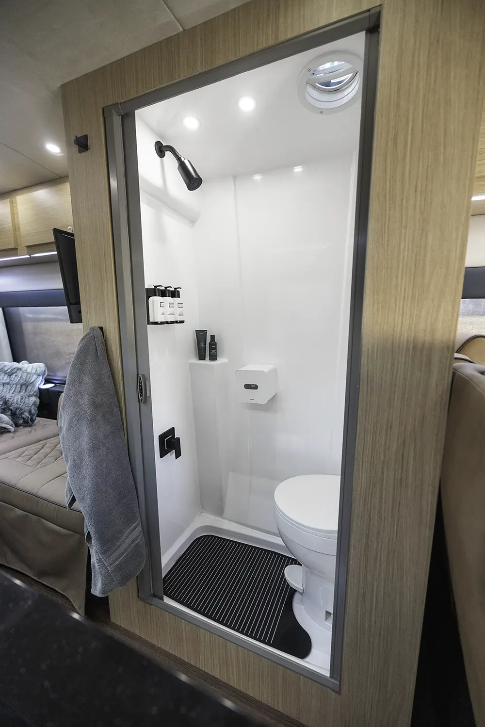 With the StarLux, you can hit the road knowing everything you need is already with you—premium seating, a full bathroom with shower, a complete galley, and a comfortable sleeping space all designed for life on the go.
