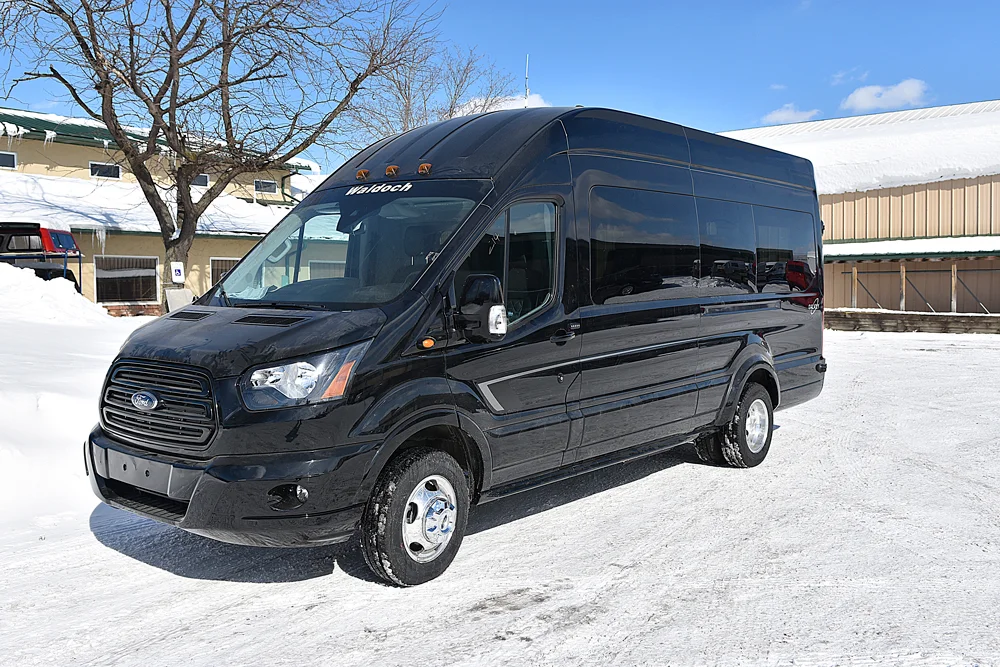 Browse 15 photos of this 2019 Ford Transit Limo van by Waldoch. This vehicle is a Waldoch limousine conversion with luxury seating, entertainment systems, and executive appointments built on the Transit platform.