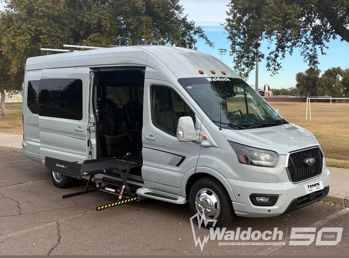 Ford Transit Mobility Van UVL Lift 148 EL High Roof 11 Passenger Luxury Conversion Van Galaxy Package By Waldoch