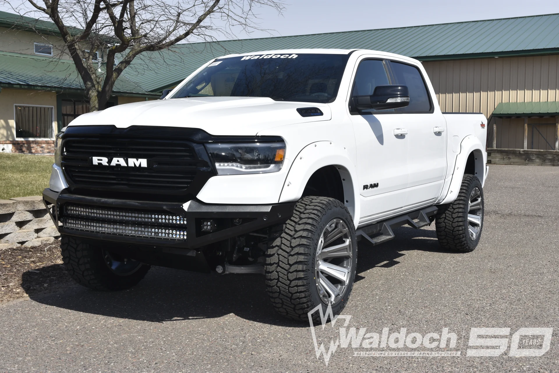Waldoch Branding: The build is rounded out with professional Waldoch branding on the windshield and "Rampage Edition" bed graphics, signifying its status as a specialized, limited-run conversion.